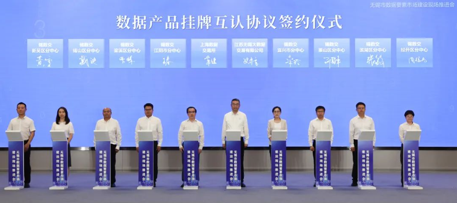 上海數(shù)據(jù)交易所、市大數(shù)據(jù)集團(tuán)、錫數(shù)交及其各地區(qū)分中心簽訂數(shù)據(jù)產(chǎn)品掛牌互認(rèn)協(xié)議。