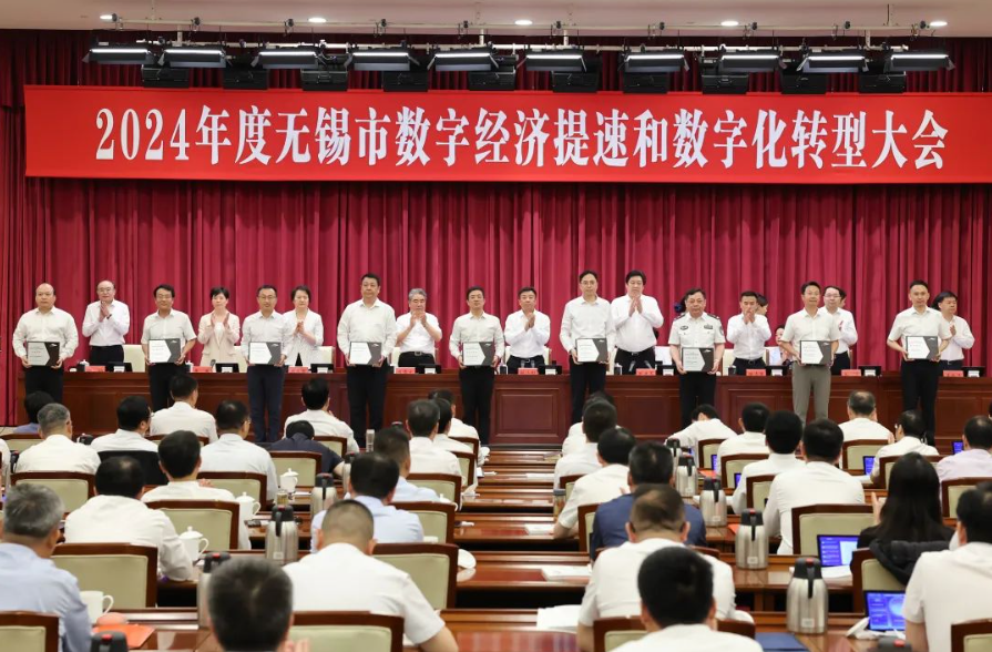 7月5日,市委、市政府召開2024年度全市數(shù)字經(jīng)濟提速和數(shù)字化轉(zhuǎn)型大會暨數(shù)據(jù)要素市場建設(shè)現(xiàn)場推進(jìn)會。市委書記杜小剛強調(diào),要深入學(xué)習(xí)貫徹習(xí)近平總書記關(guān)于數(shù)字中國建設(shè)的重要論述,認(rèn)真落實中央和省部署要求,把數(shù)字經(jīng)濟作為高質(zhì)量發(fā)展的關(guān)鍵增量,主動擁抱數(shù)字時代、揚帆數(shù)據(jù)藍(lán)海,高水平建設(shè)數(shù)字經(jīng)濟和數(shù)字化轉(zhuǎn)型標(biāo)桿城市,為全面推進(jìn)中國式現(xiàn)代化無錫新實踐注入更強數(shù)字動能。市長趙建軍主持會議。市政協(xié)主席項雪龍,市委副書記、秘書長陸志堅出席大會。市委常委、常務(wù)副市長蔣敏通報并部署重點工作。國家發(fā)改委重點實驗室主任、深圳數(shù)據(jù)交易所總經(jīng)理古亮,上海數(shù)據(jù)交易所、貴陽大數(shù)據(jù)交易所有關(guān)負(fù)責(zé)同志參加現(xiàn)場推進(jìn)會。