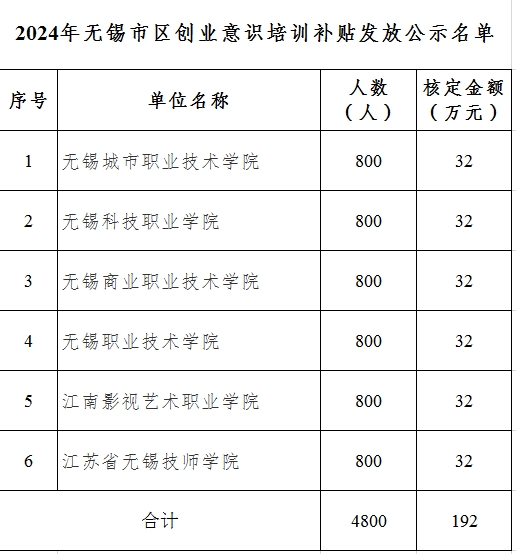 2024年無錫市區(qū)創(chuàng)業(yè)意識培訓(xùn)補貼發(fā)放公示