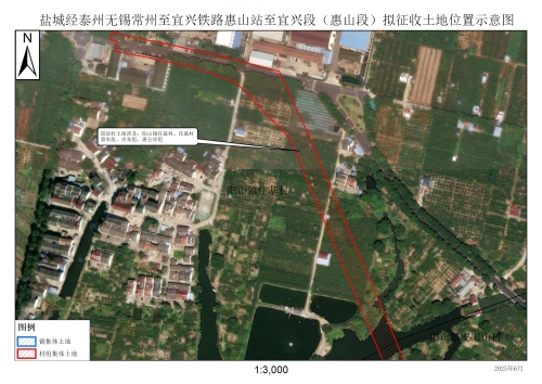 由政府組織實施的能源、交通、水利、通信、郵政等基礎設施建設需要用地,項目名稱為鹽城經(jīng)泰州無錫常州至宜興鐵路惠山站至宜興段(惠山段)。