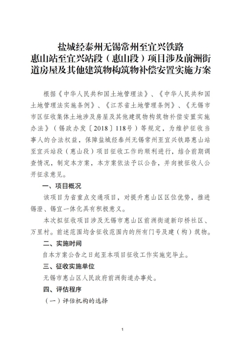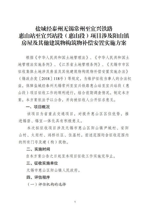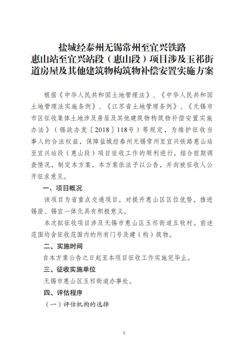 另外,涉及農村村民住宅和其他房屋的,相關事項見《鹽城經(jīng)泰州無錫常州至宜興鐵路惠山站至宜興段(惠山段)項目房屋及其他建筑物構筑物補償安置實施方案》。