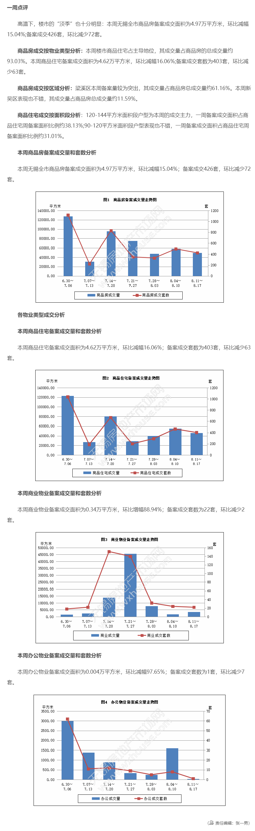 8.11~8.17無錫商品房一周備案成交4.97萬平方米 |