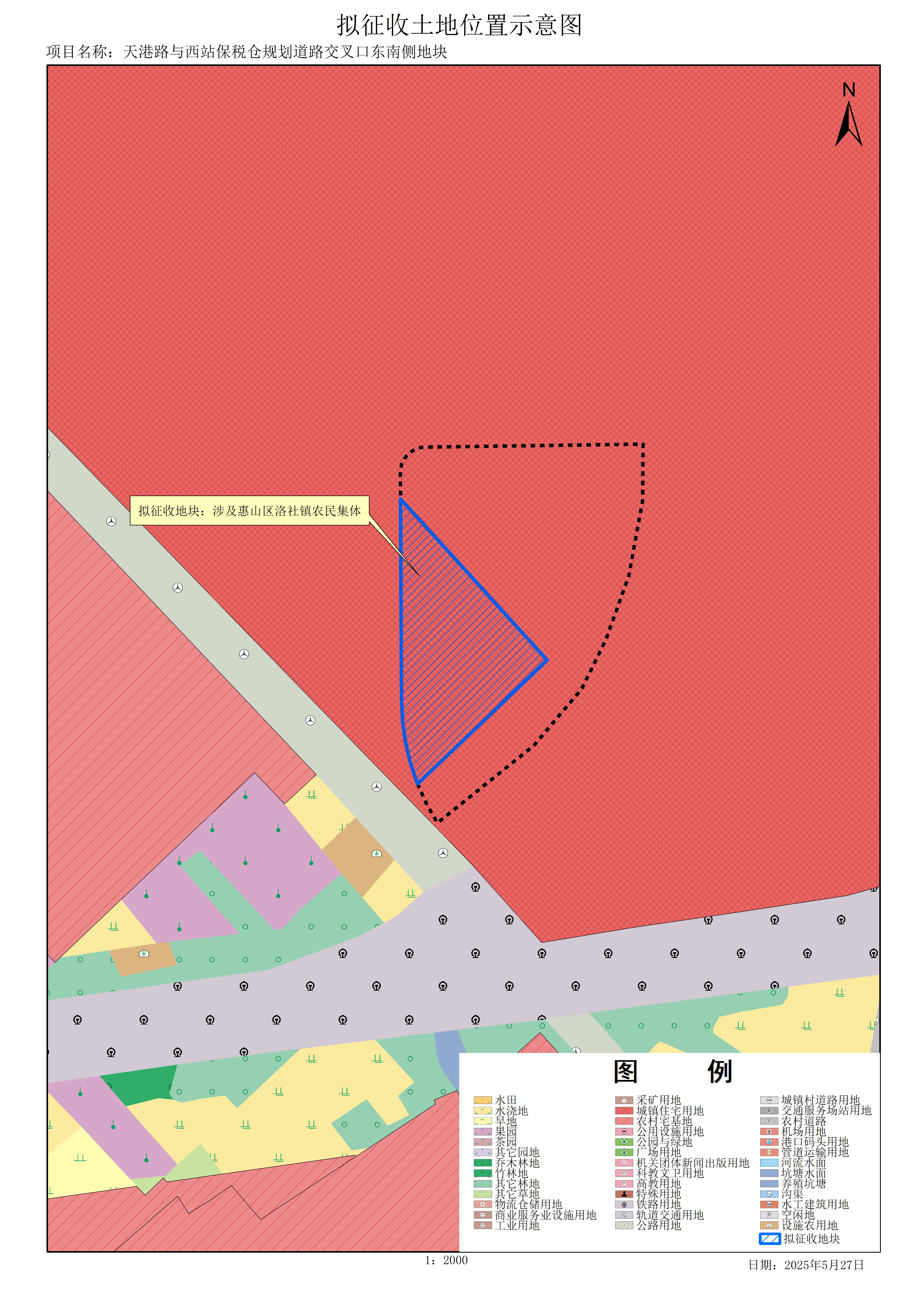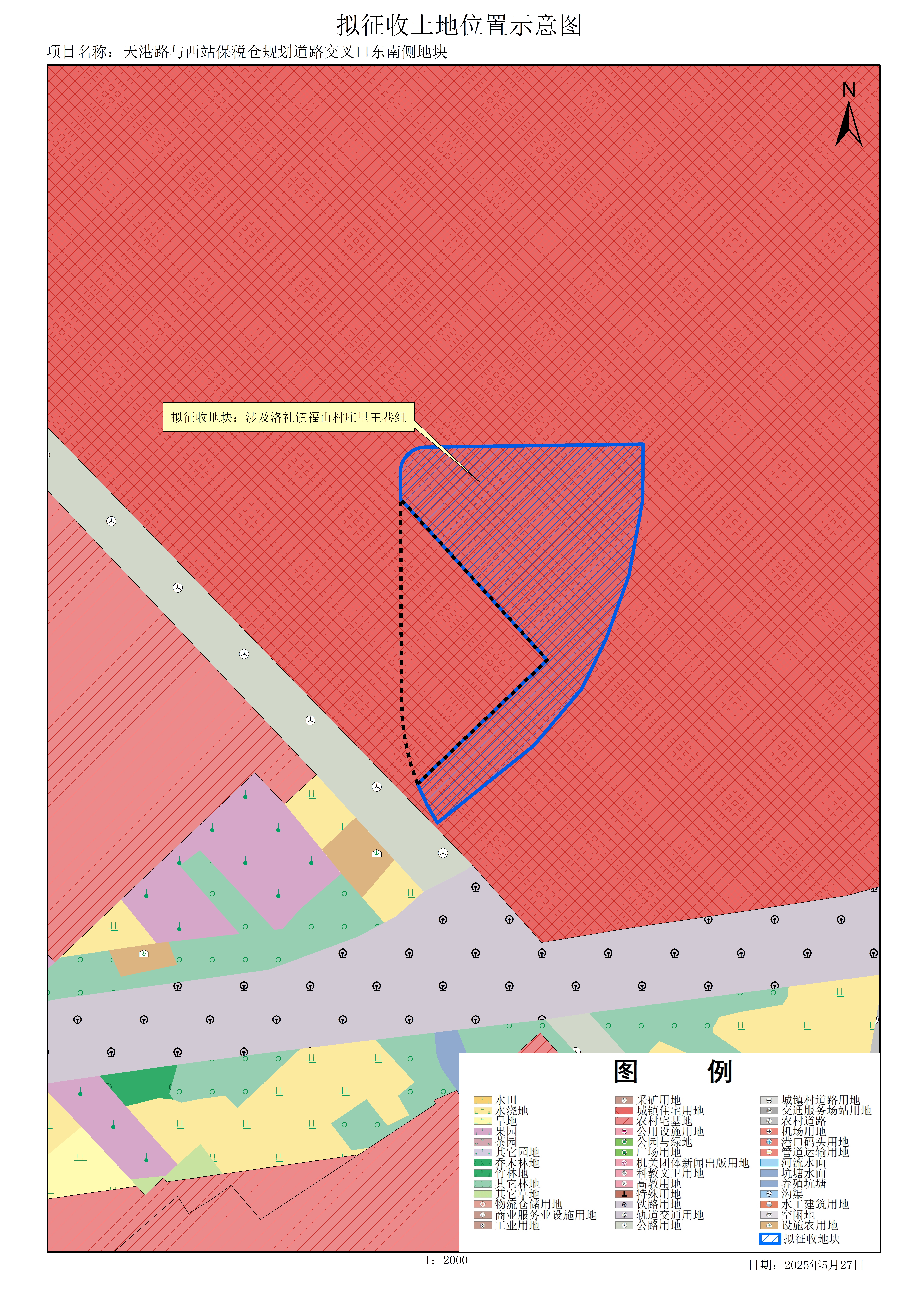 由縣級以上地方人民政府組織實(shí)施的成片開發(fā)建設(shè)需要用地,項(xiàng)目名稱為天港路與西站保稅倉規(guī)劃道路交叉口東南側(cè)地塊。