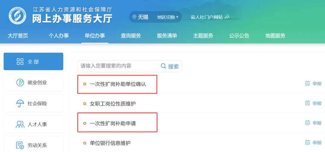 人社部門提醒,如果您的企業(yè)符合條件但是沒收到確認信息的,也可以線上申請:通過登錄“江蘇人社網(wǎng)上辦事服務大廳”,點擊“單位辦事”,找到“一次性擴崗補助申請”就可以線上辦理了。