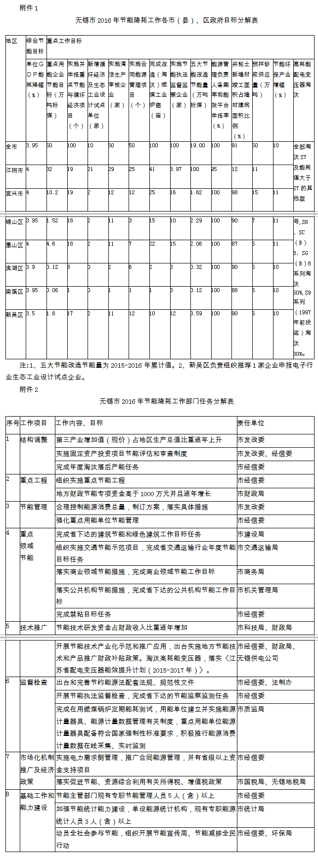 附件:1.無錫市2016年節(jié)能降耗工作各市(縣)、區(qū)政府目標分解表