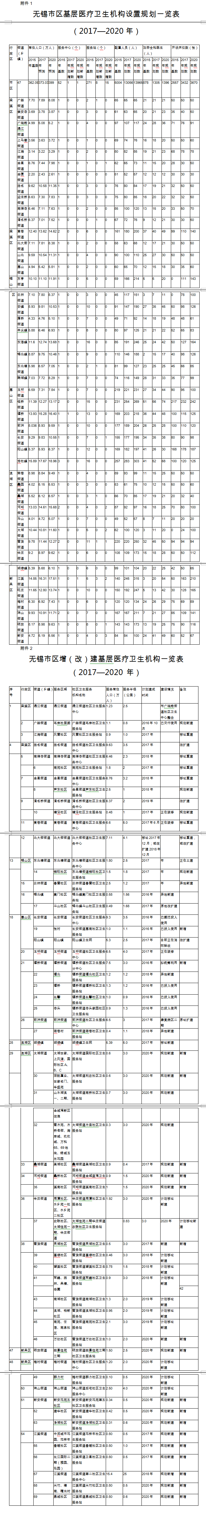 附件:1.無錫市區(qū)基層醫(yī)療衛(wèi)生機構(gòu)設(shè)置規(guī)劃一覽表(2017—2020 年);