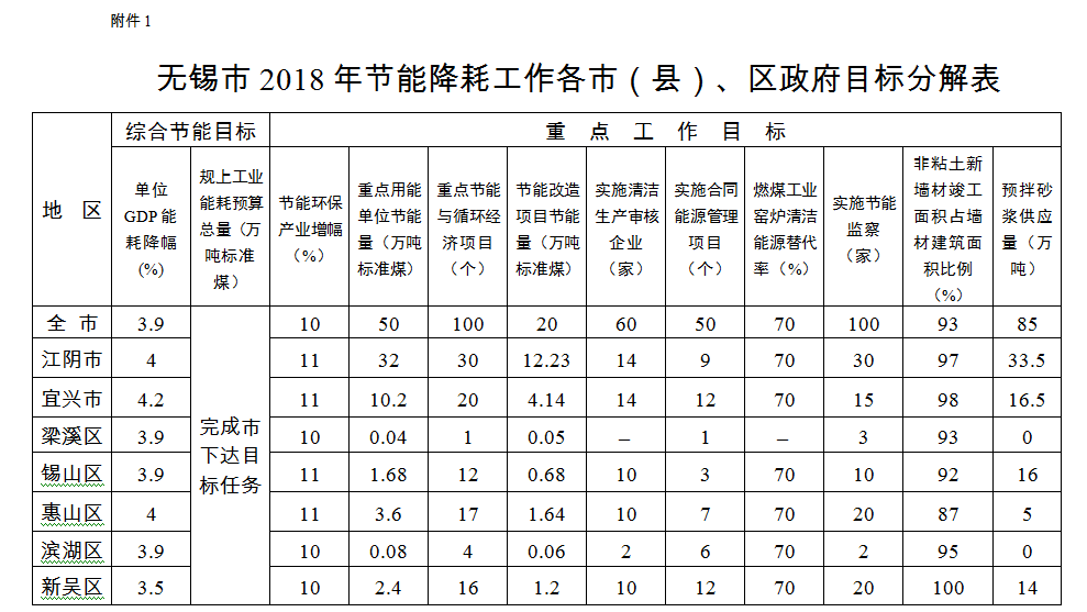 附件:1.無(wú)錫市2018年節(jié)能降耗工作各市(縣)、區(qū)政府目標(biāo)分解表