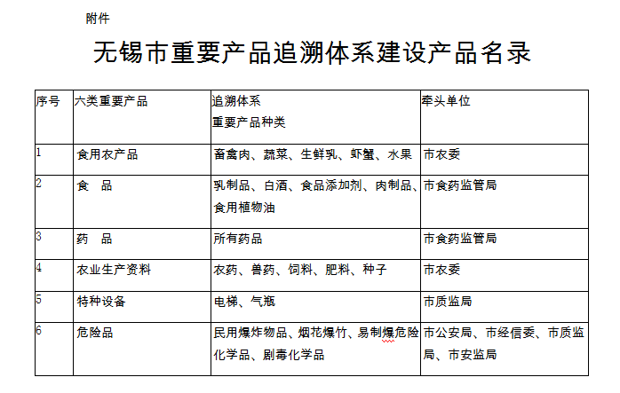 附件:無錫市重要產(chǎn)品追溯體系建設(shè)產(chǎn)品名錄