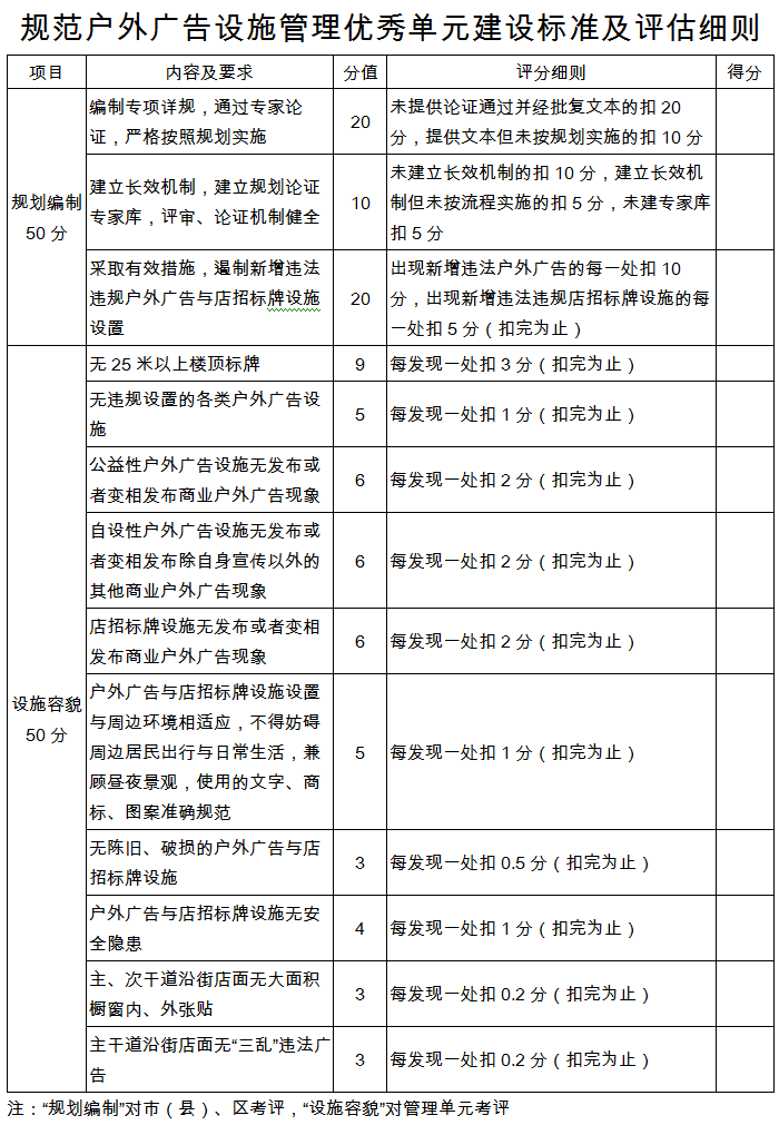 附件:規(guī)范戶外廣告設(shè)施管理優(yōu)秀單元建設(shè)標(biāo)準(zhǔn)及評(píng)估細(xì)則