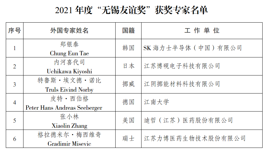 附件:2021年度“無錫友誼獎”獲獎專家名單