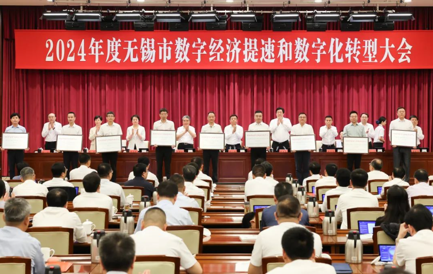 7月5日,市委、市政府召開2024年度全市數(shù)字經(jīng)濟提速和數(shù)字化轉(zhuǎn)型大會暨數(shù)據(jù)要素市場建設(shè)現(xiàn)場推進(jìn)會。市委書記杜小剛強調(diào),要深入學(xué)習(xí)貫徹習(xí)近平總書記關(guān)于數(shù)字中國建設(shè)的重要論述,認(rèn)真落實中央和省部署要求,把數(shù)字經(jīng)濟作為高質(zhì)量發(fā)展的關(guān)鍵增量,主動擁抱數(shù)字時代、揚帆數(shù)據(jù)藍(lán)海,高水平建設(shè)數(shù)字經(jīng)濟和數(shù)字化轉(zhuǎn)型標(biāo)桿城市,為全面推進(jìn)中國式現(xiàn)代化無錫新實踐注入更強數(shù)字動能。市長趙建軍主持會議。市政協(xié)主席項雪龍,市委副書記、秘書長陸志堅出席大會。市委常委、常務(wù)副市長蔣敏通報并部署重點工作。國家發(fā)改委重點實驗室主任、深圳數(shù)據(jù)交易所總經(jīng)理古亮,上海數(shù)據(jù)交易所、貴陽大數(shù)據(jù)交易所有關(guān)負(fù)責(zé)同志參加現(xiàn)場推進(jìn)會。