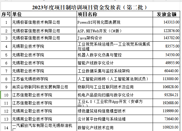 根據(jù)《市人力資源和社會(huì)保障局市財(cái)政局關(guān)于加強(qiáng)和改進(jìn)政府補(bǔ)貼性職業(yè)技能培訓(xùn)管理工作的通知》(錫人社發(fā)〔2023〕41號(hào))文件精神,自第一批公示至目前,2023年度項(xiàng)目制培訓(xùn)又有14個(gè)項(xiàng)目完成結(jié)班和第三方審核,現(xiàn)根據(jù)第三方提交的項(xiàng)目《決算審核報(bào)告》進(jìn)行補(bǔ)貼發(fā)放前公示,情況如下: