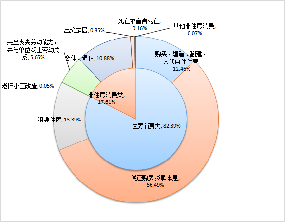 2025年一季度,住房消費類提取金額為60.86億元,環(huán)比增長7.93%,占當(dāng)季提取額的82.39%。其中還貸提取占比最高,提取金額41.73億元,占當(dāng)季提取額的56.49%。具體提取結(jié)構(gòu)如下: