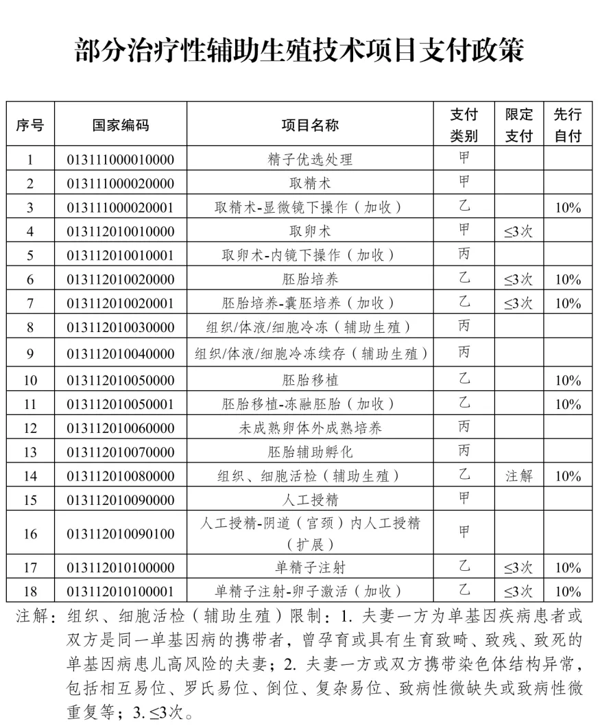 01 “胚胎培養(yǎng)”等13個(gè)輔助生殖類(lèi)醫(yī)療服務(wù)項(xiàng)目的待遇