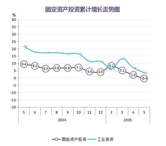 2025年1-5月固定資產(chǎn)投資下降0.4%