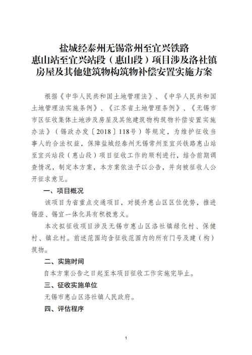 另外,涉及農村村民住宅和其他房屋的,相關事項見《鹽城經(jīng)泰州無錫常州至宜興鐵路惠山站至宜興段(惠山段)項目房屋及其他建筑物構筑物補償安置實施方案》。
