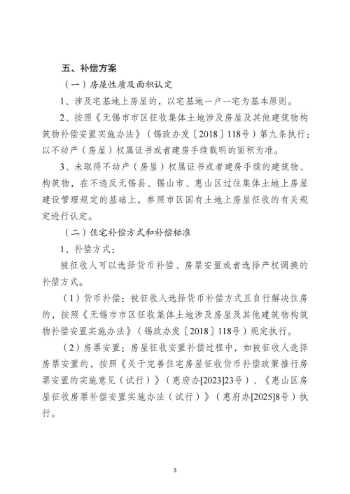根據(jù)《中華人民共和國土地管理法》第47、48條等有關規(guī)定,依據(jù)惠山區(qū)擬征告〔2025〕38號擬征收土地公告和征地社會穩(wěn)定風險評估結果,結合土地 現(xiàn)狀調查情況,惠山區(qū)人民政府組織有關部門編制征地補償安置方案如下: