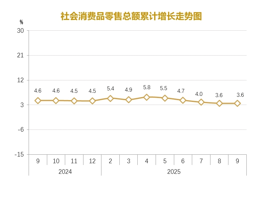 | 內(nèi)容概述 | 2025年1-9月社會(huì)消費(fèi)品零售總額增長(zhǎng)3.6% | ||||