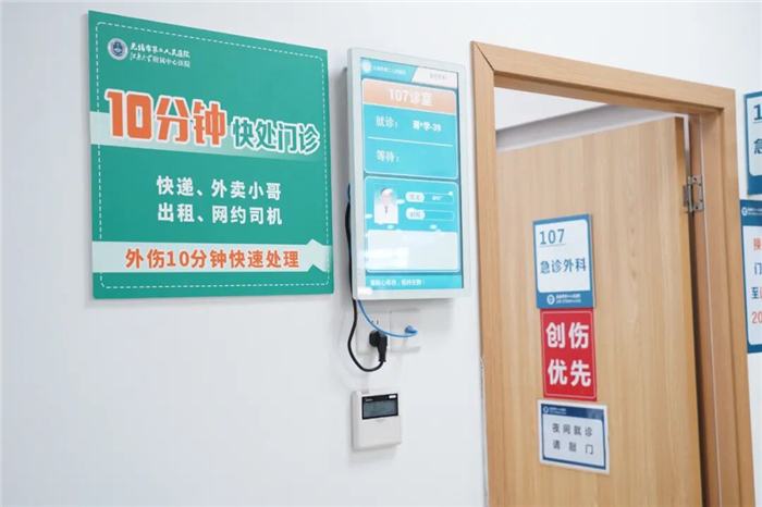 10分鐘快處是否名副其實?記者來到市二院,在工作人員的指引下了解了綠色通道的就醫(yī)流程。“前來就診的外賣員等可以在醫(yī)院任一掛號窗口進行10分鐘快處門診掛號,工作人員驗證身份并完成免費掛號后,患者即可到一樓診室就診。”門診部主任馮軍介紹道。記者發(fā)現(xiàn),咨詢臺、掛號處與診室均集中在醫(yī)院一樓,距離極近,如果是只需普通處置的外傷,基本可以在10分鐘內(nèi)處置完。