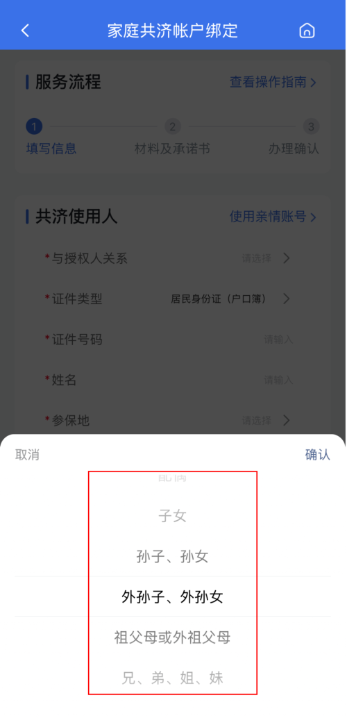 2. 填寫家庭成員信息,確認近親屬關(guān)系