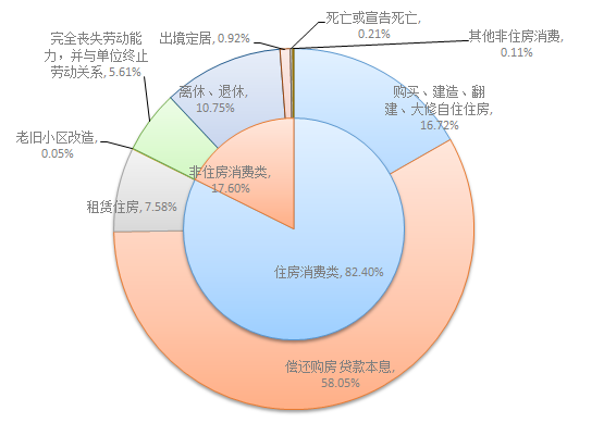2025年二季度,住房消費類提取金額為50.01億元,環(huán)比下降17.83%,占當季提取額的82.4%。其中還貸提取占比最高,提取金額35.23億元,占當季提取額的58.05%。具體提取結構如下: