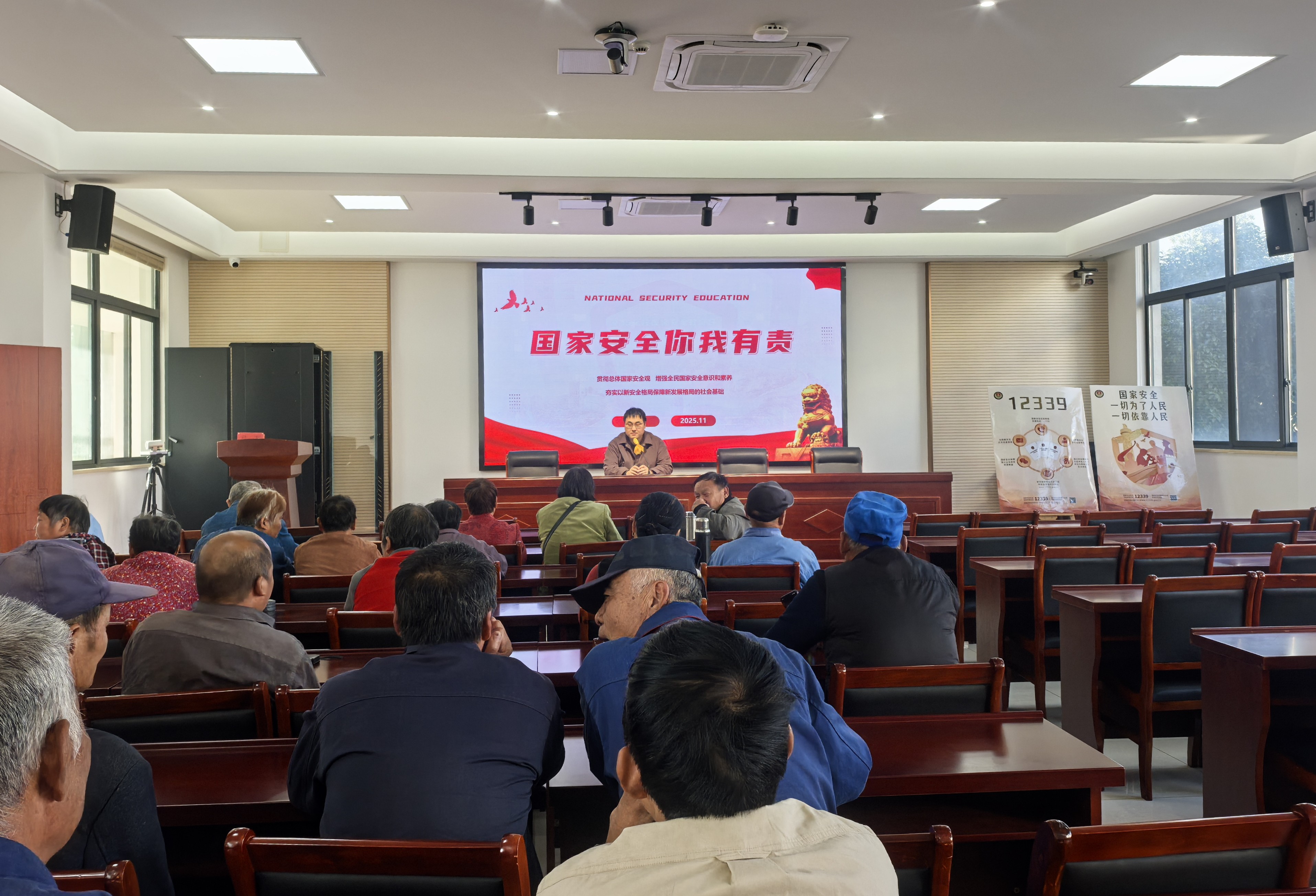 11月10日,周鐵鎮(zhèn)在分水村新時代文明實踐站舉辦 “全民國家安全教育”普法宣傳活動,以專題講座+現(xiàn)場宣傳的形式,向村民群眾普及國家安全知識,推動總體國家安全觀在基層落地生根。?